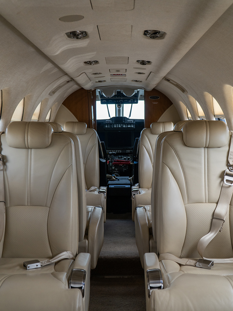 An economical option to reach a destination less than 3-4 hours away non-stop, Turbo Props can carry from between 2-3 passengers to 30-70 passengers. There is a wide spectrum of cabin interior options: from conventional airline seating to luxurious seating. Catering is available, and it can be customized according to personal tastes and preferences. A Turbo Prop with a 10 or more passenger capacity will have a lavatory available. Turbo Props often have limited baggage capacity.